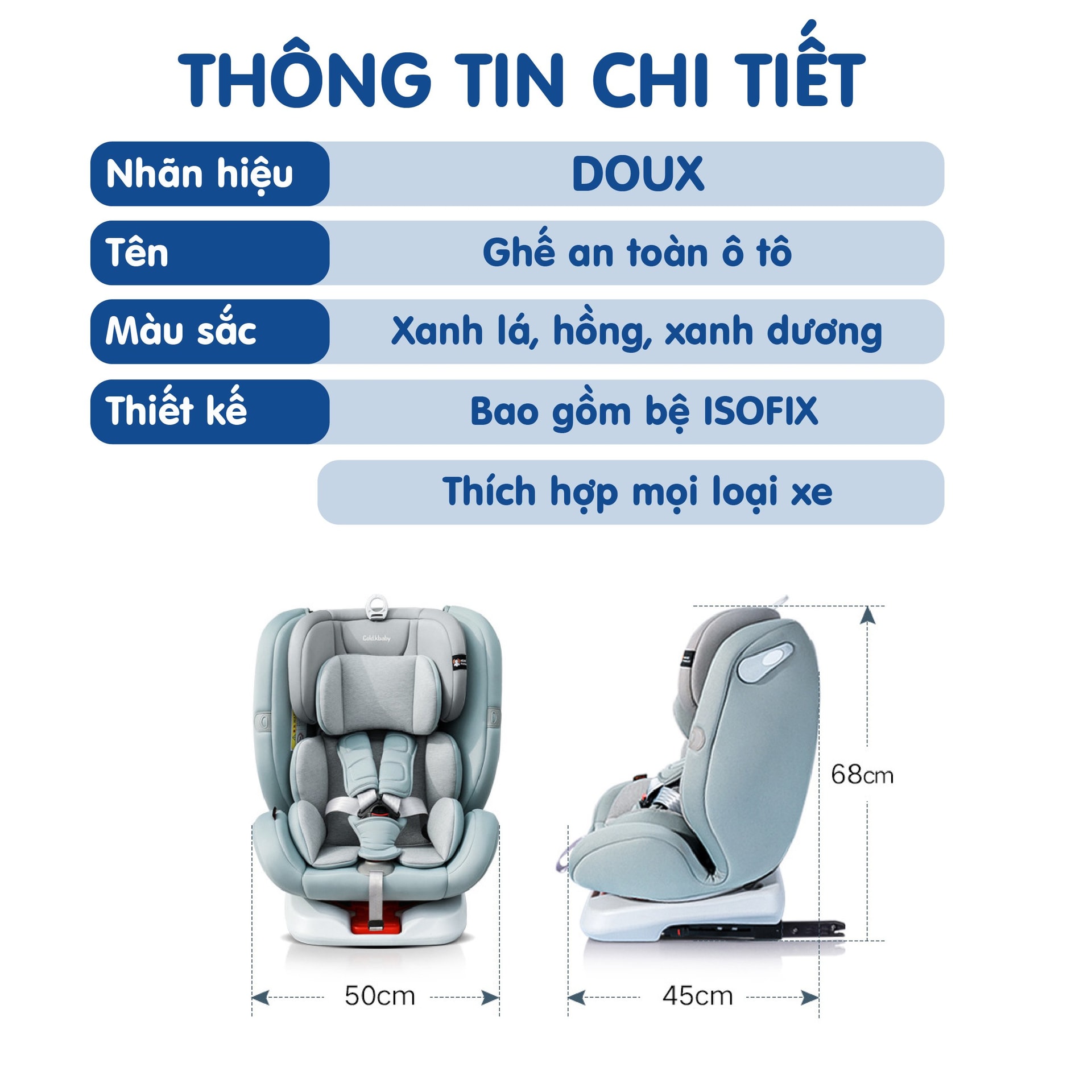 Ghế ngồi xe ô tô an toàn cho bé – Doux