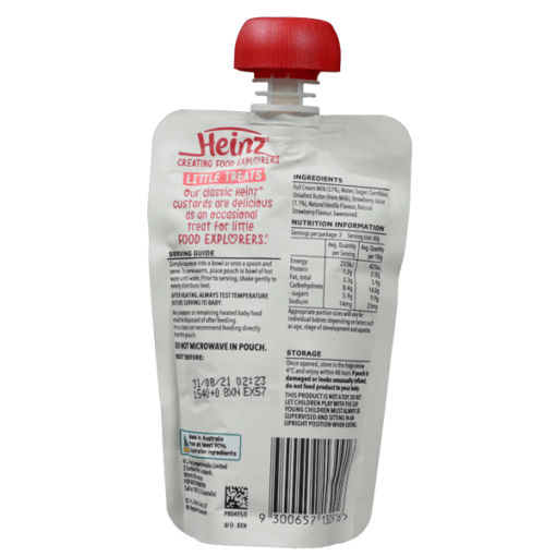 Custard dâu và vani Heinz là sản phẩm ăn dặm dành cho trẻ từ 8 tháng tuổi trở lên, có vị thơm, ngọt dịu giúp bé làm quen với vị của những loại thức ăn khác nhau. Thành phần công thức được thiết kế với những bữa tập ăn đầu tiên. Cung cấp năng lượng cho trẻ phát triển tốt trong giai đoạn này.